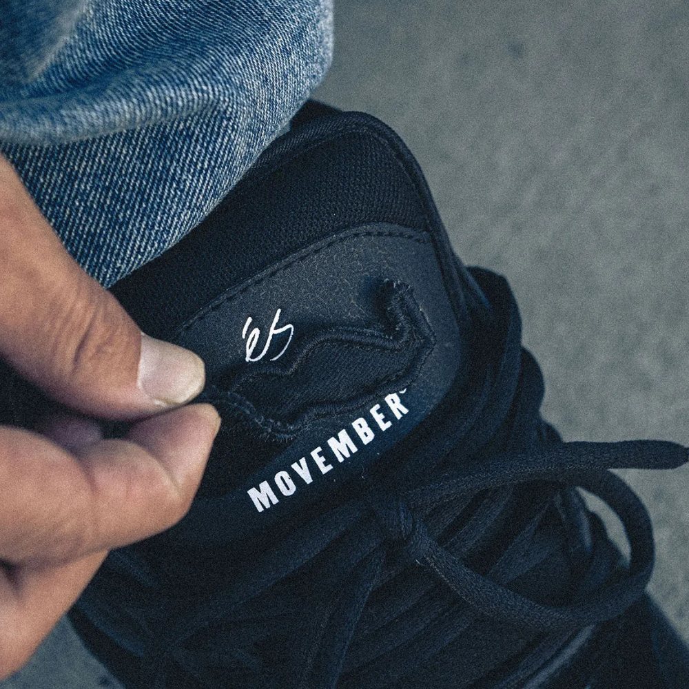 The Movember x TJ Rogers colorway features a detachable moustache on the tongue, doubling as a wearable reminder to talk, check in, and look out for each other - a kind of hairy ribbon translated through the lens of skateboarding.