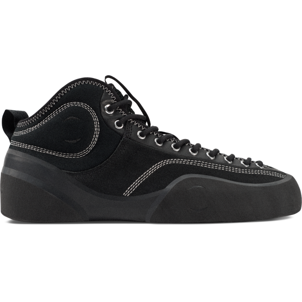 Easy to break in with soft, sticky climbing rubber that flicks just right wrapped around the toes and heel. The mid-top collar sits low in the back for easy entry and is padded for protection.